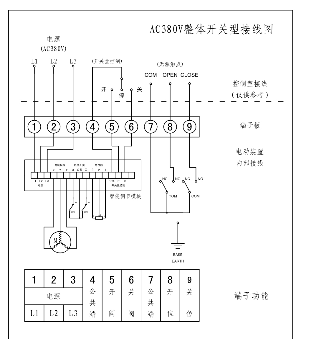 注意:以上线路图仅供参考,实际以产品附带电路图为准。另,每个厂家的电动装置均不一样,接线方式也都不尽相同,请勿以此为标准去执行操作,若产生一系列问题及发生相关事故,本公司概不负责,还望悉知!