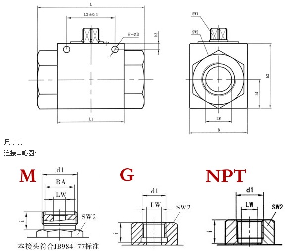 内螺纹高压球阀连接尺寸: